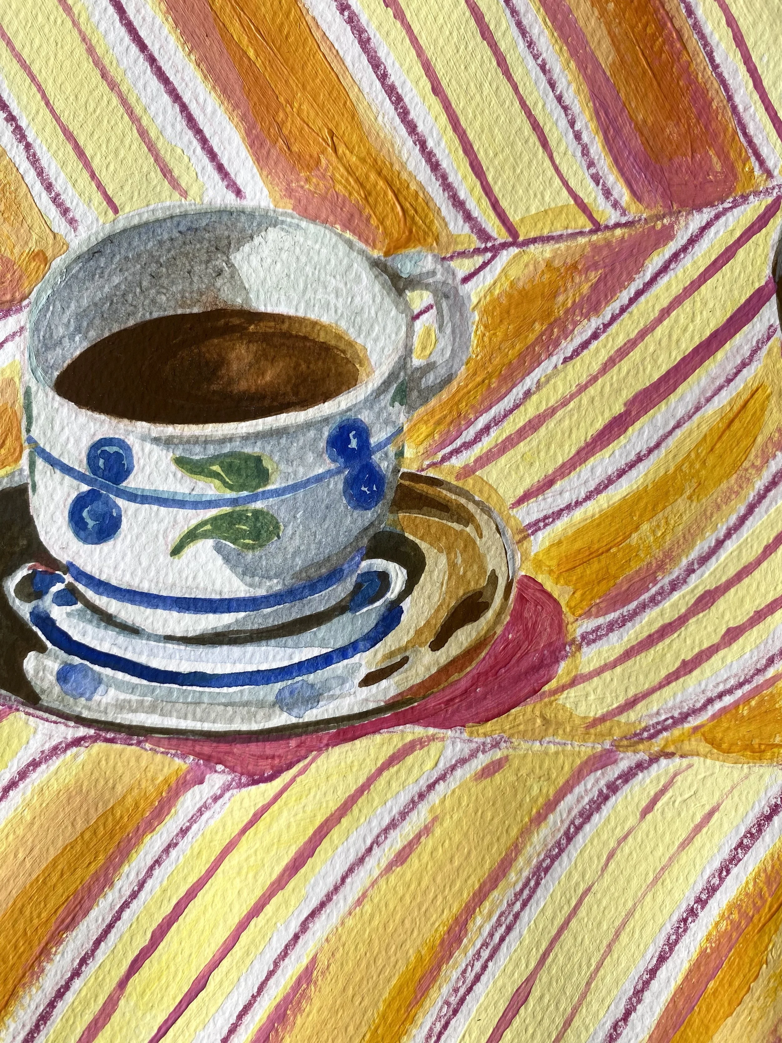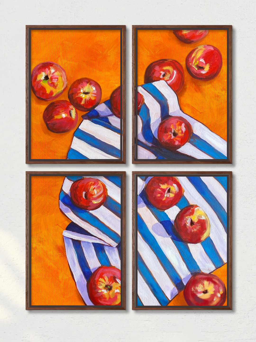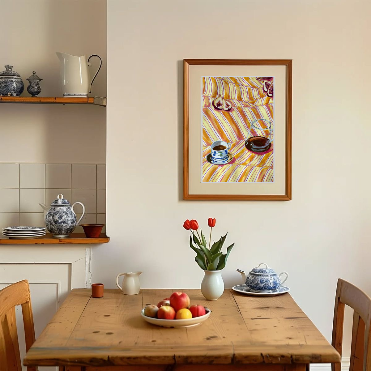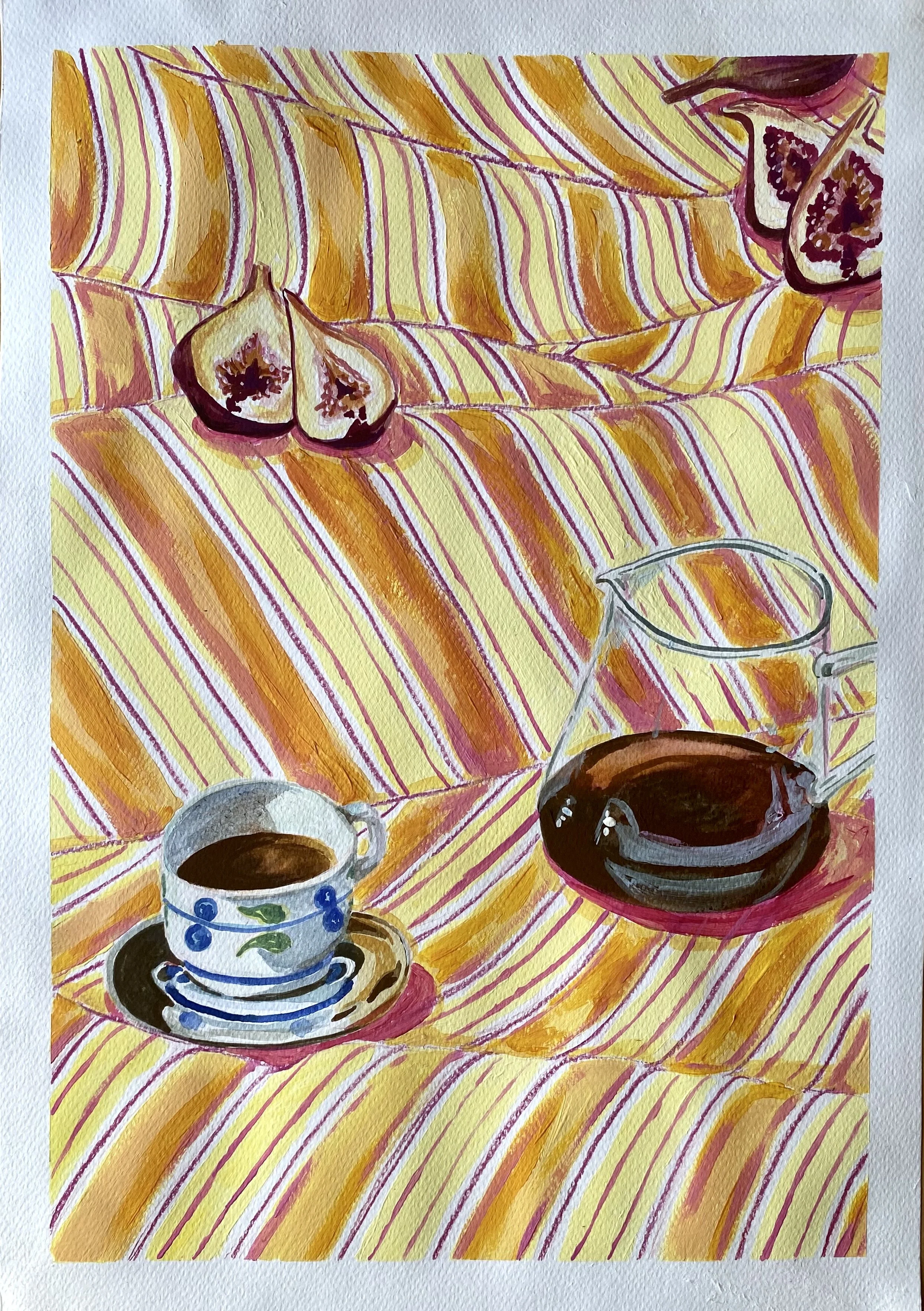 This original painting is part of my ‘Summer Brunch’ series which features various food combinations on top of bright, patterned tablecloths. This series was inspired by the food photography of Lauren Rea, an Australian food influencer.